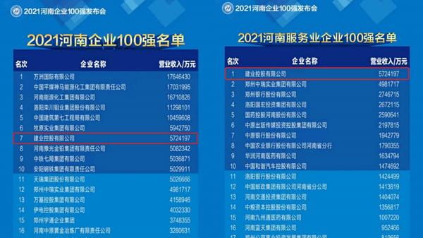 2021河南企业100强发布,建业集团位列服务业企业首位【图文】