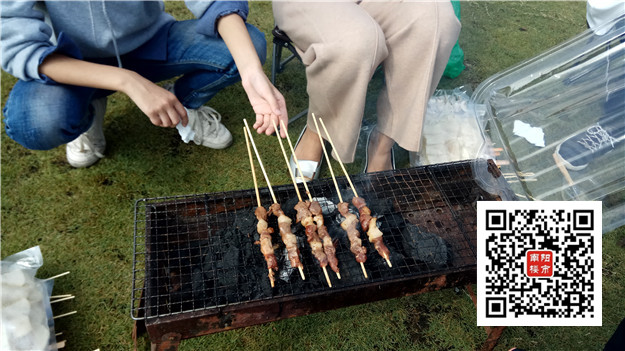 烧烤开始,不一会儿一个个烧烤架散发出诱人的香味,弥漫开来,令人馋涎欲滴。